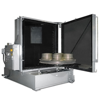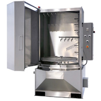 HD turntable spray cabinet washers are designed to clean large parts placed directly on a swing-out turntable or batches of small parts loaded in baskets or on a holding fixture.