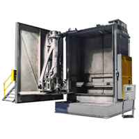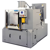 batch-type power-spray heavy-duty parts washer designed to clean large, heavy workpieces while taking up minimal floor space.